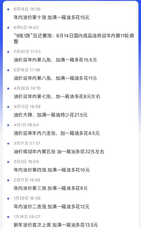 今年涨价的幅度,加满一箱50升已经能吃一顿不错的了。