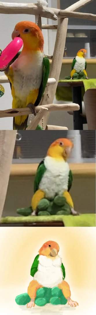 主人给鹦鹉拍照,