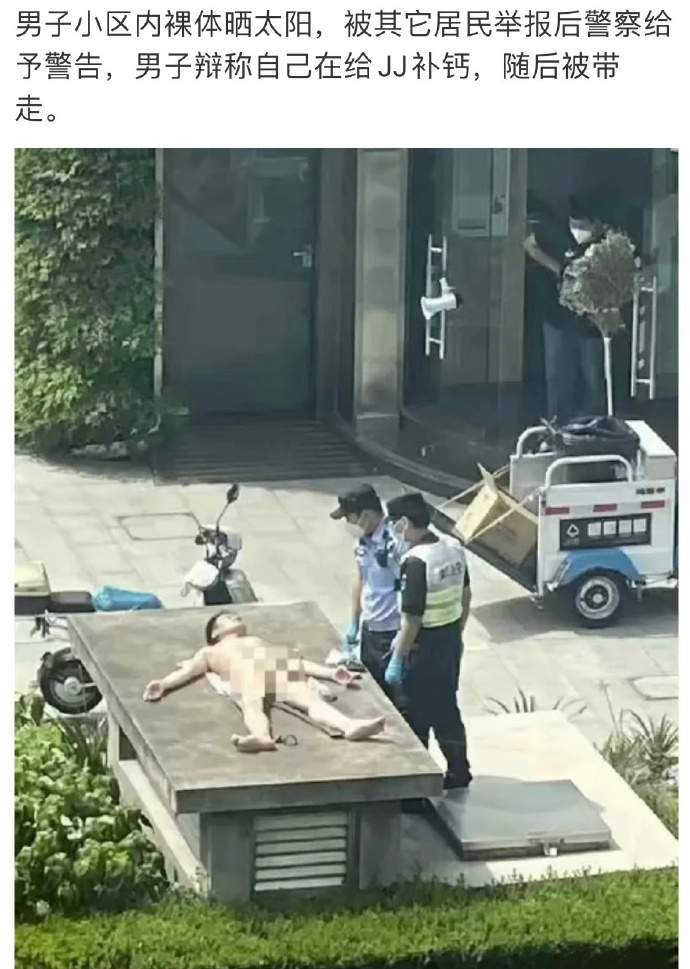 男子小区内裸体晒太阳,