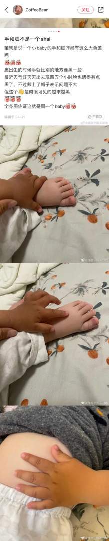 小朋友的手和脚不是一个色。